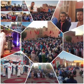 في إطار الاحتفالات المخلدة لذكرى المسيرة الخضراء نظمت الهيئة الدولية للمعاجرين والمستثمرين المغاربة بالعالم وبتنسيق مع ولاية جهة كلميم وادنون بدعم من مندوبية الثقافية بجهة كلميم وادنون ومؤسسة بدوح لتعليم السياقة سهرة فنية بمدينة كلميم بحديقة التواغيل العمومية تضمنت تنوعا موسيقيا ضم أغاني وطنية وحسانية وتراثية وفلكلور محلي الذي أحياء هذه السهرة التي لقت إعجاب الجمهور الذي حج بكثافة لمتابعة مختلف فقرات السهرة التي أحيتها فرق صحراوية حسانية و فرقة أوركسترا نجوم السمر وفرقة موسيقية إفريقية ومجموعة العواد ، وإفتتحت الهئية الدولية هذه الامسية الفنية بأيات من الذكر الحكيم والنشيد الوطني وكما عرفت مشاركة جمعية الخير لكفالة اليتيم بفقرة من أناشيد وطنية التي أشرف عليها فتيات من الجمعية.