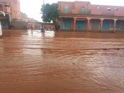 و شوهدت مياه الامطار الجارفة و هي تغزو شوارع البلدية و دكاكين السوق الذي كان الاكثر تضررا.