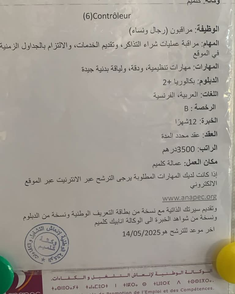 تعلن الشركة المسؤولة عن تدبير قطاع النقل الحضري والجامعي بكلميم وما بين جماعات إقليم كلميم عن فتح باب التوظيف لثلاثين سائقا وستة مراقبين ومنصبين إداريين. ورغم أهمية هذه المبادرة في توفير فرص عمل لسكان المنطقة، إلا أن الإعلان أثار العديد من التساؤلات والانتقادات من قبل المهتمين بالشأن المحلي.